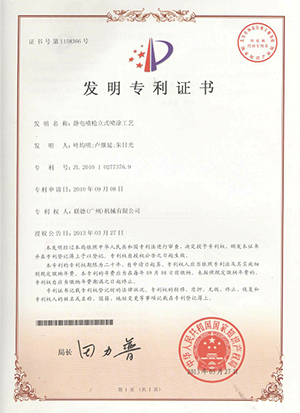 ▲聯(lián)德發(fā)明專利《靜電噴槍立式噴涂工藝》