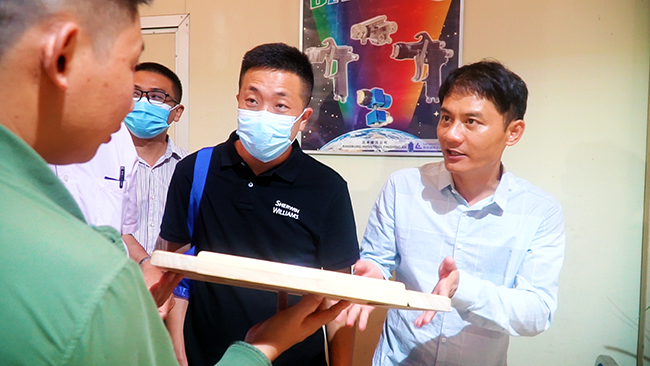 中國涂料工業(yè)協(xié)會專家委員會原副主任葉漢慈,廣東省涂料行業(yè)協(xié)會秘書長呂水列,宣偉涂料中國區(qū)技術應用總監(jiān)高仕鵬,技術應用高級經(jīng)理劉學文,技術應用高級經(jīng)理徐彥立,博蘭智涂裝設備(上海)有限公司總經(jīng)理聶昆,一般工業(yè)銷售經(jīng)理莊敬,聯(lián)邦家私集團采購中心總經(jīng)理何友志,聯(lián)德(廣州)機械有限公司總經(jīng)理兼廣東省涂料行業(yè)協(xié)會涂裝分會理事長葉均明,聯(lián)德(廣州)機械有限公司技術方案經(jīng)理肖國勇,聯(lián)朗(上海)機械有限公司經(jīng)理劉燕,聯(lián)德(廣州)機械有限公司北京辦事處經(jīng)理鄭偉,“涂料專家+涂料生產(chǎn)商+家具制造商+設備生產(chǎn)商”四方聯(lián)動,相互賦能,得到了業(yè)內外人士的廣泛好評。