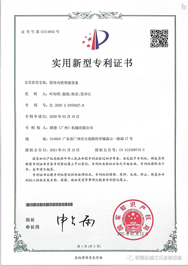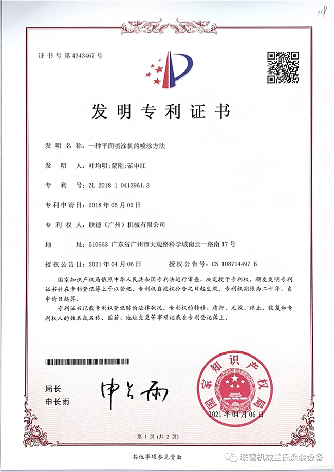 以上專利,是聯(lián)德靜電涂裝技術(shù)發(fā)展不斷提升的見(jiàn)證。