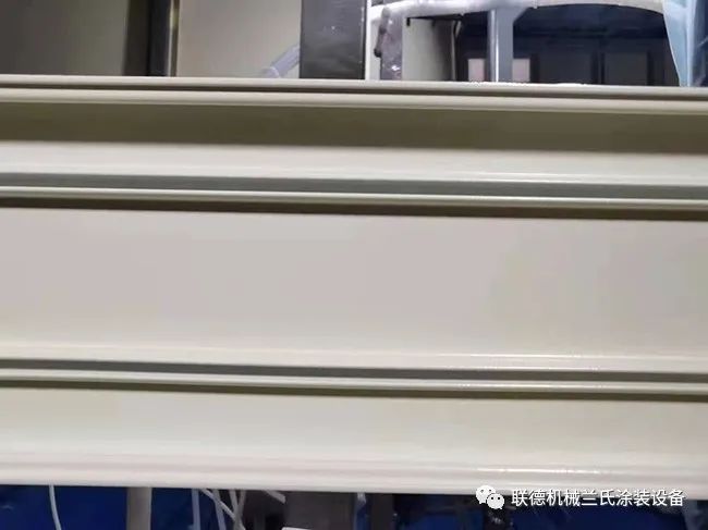 創(chuàng)新設(shè)計(jì)的橫式全自動(dòng)靜電噴涂專機(jī),全球首創(chuàng)氟碳漆鋁型材全自動(dòng)化噴涂,該發(fā)明創(chuàng)造實(shí)現(xiàn)了鋁型材真正意義上的全自動(dòng)化噴涂,工藝先進(jìn)、操作簡(jiǎn)單、安全高效(產(chǎn)能直接提升30%--50%)、高質(zhì)量(涂層膜厚更均勻的同時(shí),直接解決了傳統(tǒng)往復(fù)機(jī)噴涂容易造成的斑馬紋,工件正反面陰陽(yáng)色的質(zhì)量問(wèn)題)、油漆上漆率可提高15%-20%、voc排放減小30%以上。橫式全自動(dòng)靜電噴涂專機(jī)目前已申請(qǐng)通過(guò)中國(guó)發(fā)明專利,另已在申請(qǐng)全球發(fā)明專利。