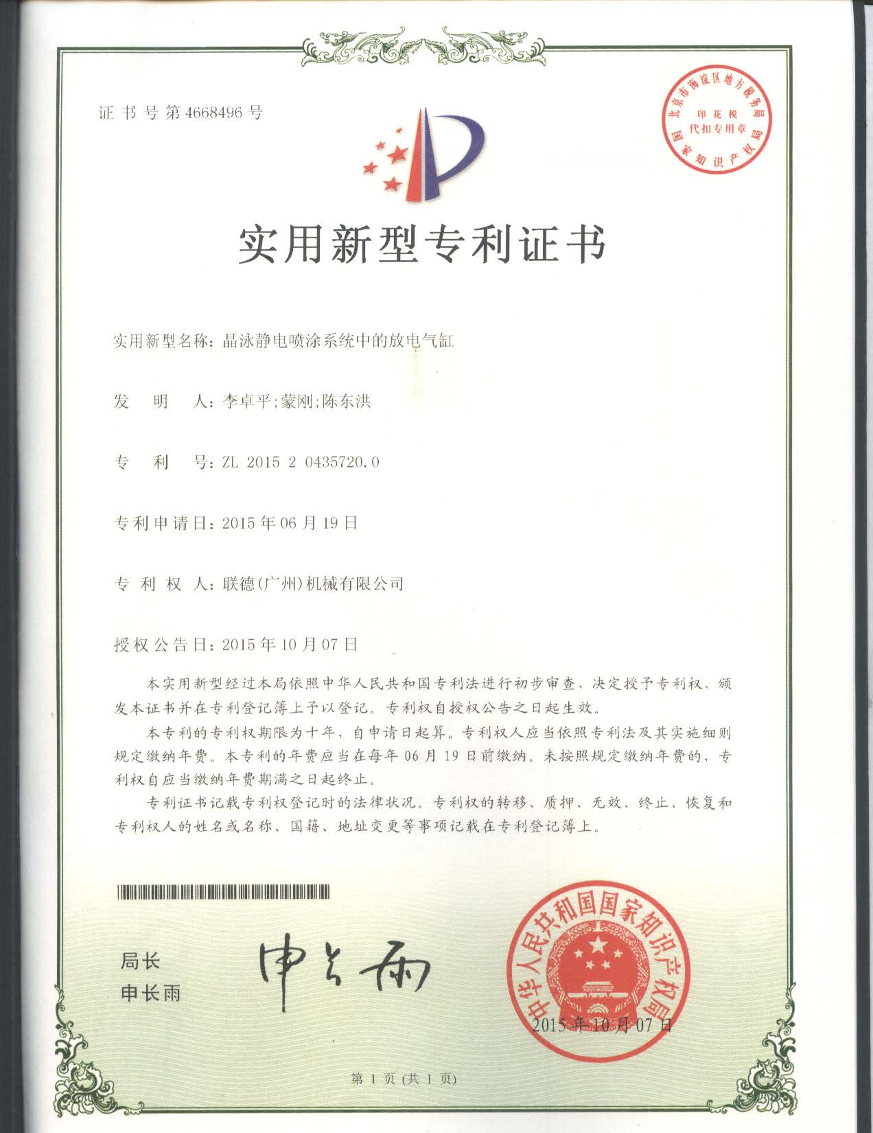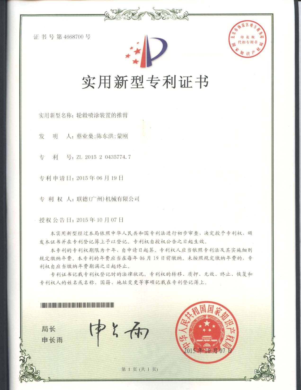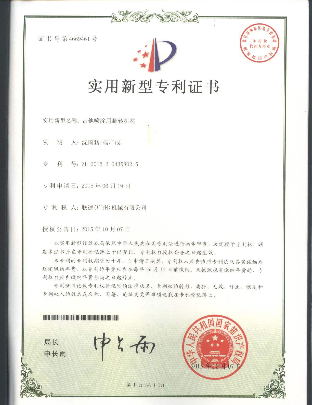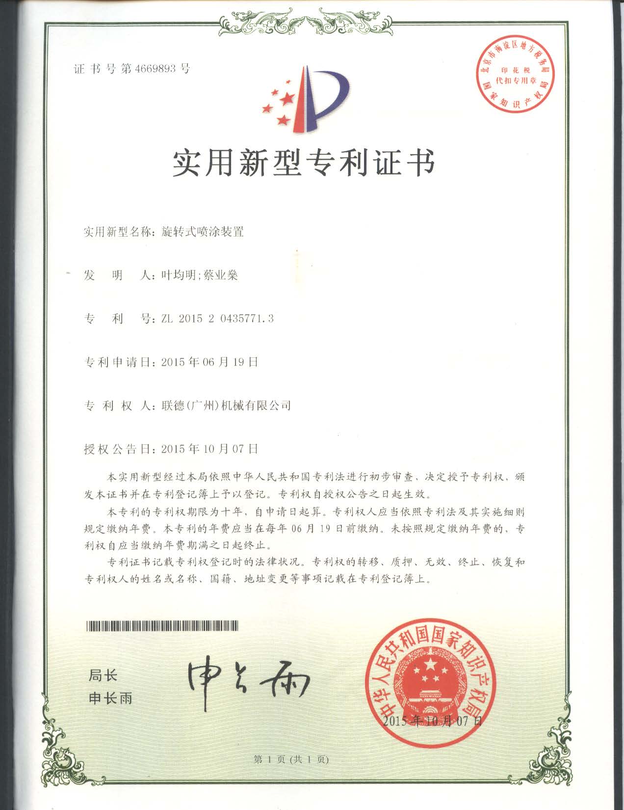 通過(guò)多年來(lái)的努力,聯(lián)德(廣州)機(jī)械有限公司現(xiàn)已擁有發(fā)明專利2項(xiàng),實(shí)用新型專利19項(xiàng)。這些專利成果為公司今后的發(fā)展積蓄了前進(jìn)的動(dòng)力,進(jìn)一步提升了公司產(chǎn)品科技含量,增強(qiáng)了產(chǎn)品穩(wěn)定性,提高企業(yè)核心競(jìng)爭(zhēng)力,為公司的再發(fā)展提供了強(qiáng)有力的科技支撐。