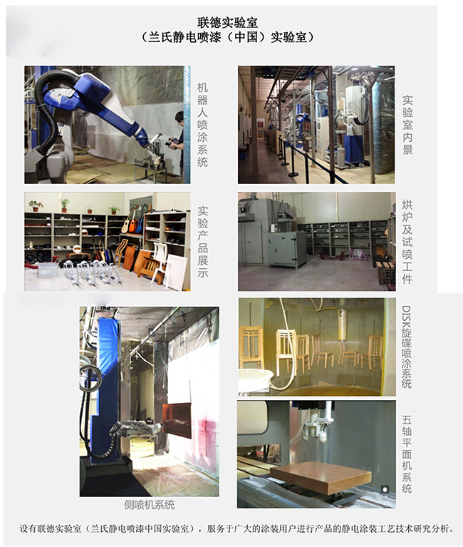 聯(lián)德(廣州)設有蘭氏靜電噴漆(中國)實驗室,為涂裝用戶進行產品的靜電涂裝工藝技術研究分析。聯(lián)德(廣州)機械有限公司是門窗行業(yè)優(yōu)秀供應商,國內同時擁有高新技術企業(yè)、科技小巨人企業(yè)榮譽的涂裝企業(yè),擁有多項涂裝專業(yè)的發(fā)明專利及實用新型專利證書,是日本蘭氏公司的戰(zhàn)略技術合作伙伴。聯(lián)德(廣州)專注靜電涂裝設備、水性漆靜電噴涂等方面的應用創(chuàng)新,為家具企業(yè)帶去的全方位靜電涂裝工藝解決方案,正成為木家具行業(yè)涂裝噴漆工藝技術自動化的標桿,并引導木工家具行業(yè)轉變傳統(tǒng)噴漆技術工藝理念。