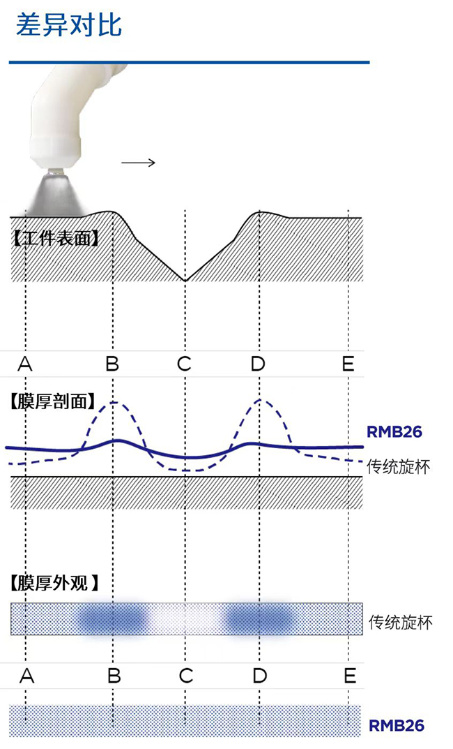 塑料件上漆率從行業(yè)平均40-55%提升至80-85%以上,較傳統(tǒng)手工噴涂線年節(jié)約涂料成本超50%。 借助旋杯內(nèi)置升壓模塊設(shè)計(jì),精密調(diào)控漆膜覆蓋率,實(shí)現(xiàn)復(fù)雜工件涂層厚度精準(zhǔn)控制,確保各部位涂層均勻性。